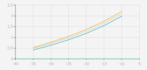 | 蒸發(fā)溫度 | 制冷量+/-5% | 能耗+/-5% | 現(xiàn)在能效+/-5% | 氣體流速+/-5% | 能效+/-7% | ||||